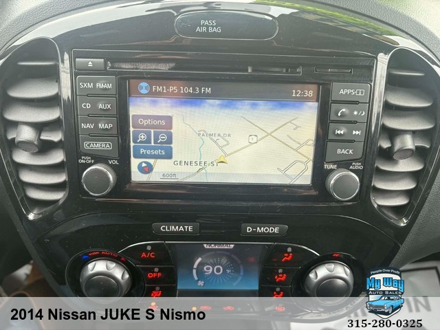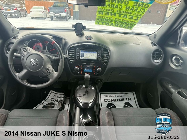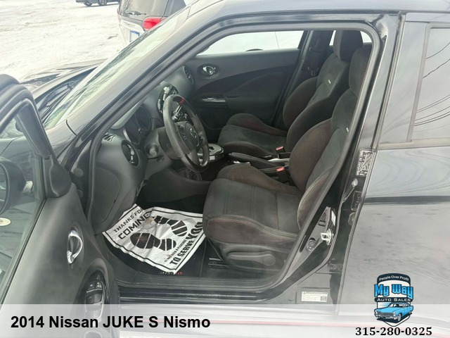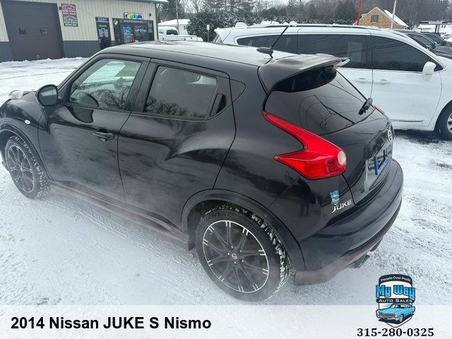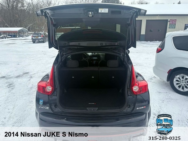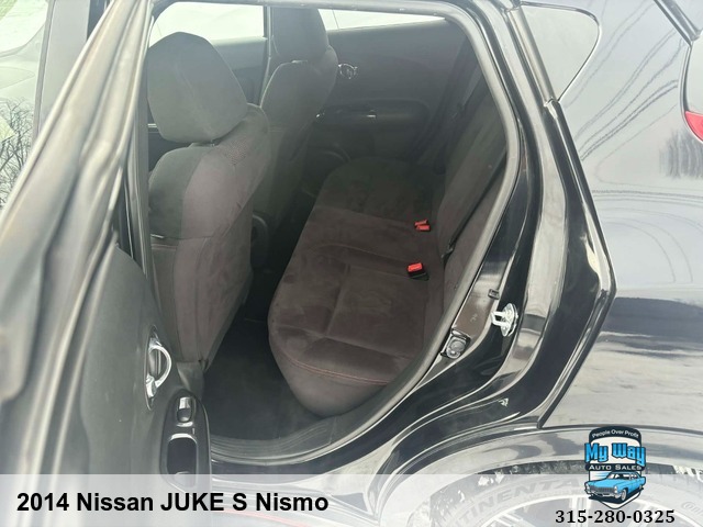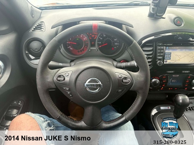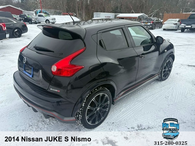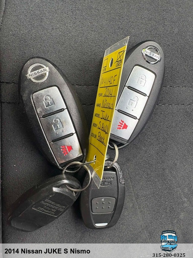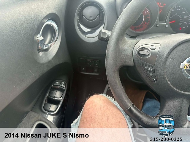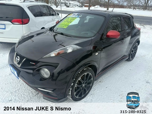 Rev up your style with this sleek and sporty 2014 Nissan Juke S Nismo! With only 90,251 miles on the odometer, this SUV is ready to hit the road with its powerful 1. 6L engine and smooth Continuously Variable Transmission. Loaded with features like airbags, anti-theft system, alloy wheels, cruise control, and premium sound system - this Juke has everything you need for a comfortable ride. Whether you're cruising around town or hitting the open highway, this Nissan Juke is sure to turn heads wherever you go. Don't miss out on your chance to own this stylish and reliable vehicle - contact us today to schedule a test drive! Drive in style and comfort with this amazing deal - experience the thrill of owning a Nissan Juke S Nismo today! AWD, Back up camera, No accidents, One owner, Out of State, Runs drives great, Satellite radio, GPS system, Looks & runs great, Very clean interior, First time buyer's program available , Financing options available, Call Scott 3, One, 5-3, Four, 5, Five, 5, One, 9, Call Mechelle 3, One, 5-7, Six, 1 - Seven, 2 , Six, 9, Call Justin 3, One, 5-7, Nine, 5-7, Four, 4, Nine, View our inventory at www.mywayautocny.com