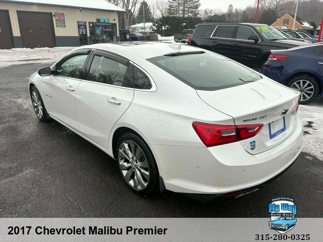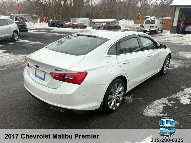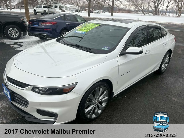 Introducing the sleek and stylish 2017 Chevrolet Malibu Premier! With a powerful 2. 0L engine and luxurious features like leather seating, heated seats, and a sun/moon roof, this sedan is sure to turn heads wherever you go. Whether you're cruising around town or hitting the open road, the Malibu's advanced safety features like anti-lock brakes and multiple airbags will give you peace of mind on every journey. Don't miss out on your chance to own this top-of-the-line vehicle with only 92,533 miles on it. Imagine yourself behind the wheel of this beauty - feeling the power of its engine as you enjoy premium sound through its CD player or satellite radio system. Upgrade your driving experience today with the 2017 Chevrolet Malibu Premier. Drive in style, comfort, and confidence - get ready to make a statement on the road! Must see, One owner, No accidents, Out of State, New car trade, Non-smoker, GPS system, Satellite radio, Well maintained, Very clean interior, First time buyer's program available , Financing options available, Back up camera, Call George 3, One, 5-4, One, 5, Five, 0, Six, 1, Call Justin 3, One, 5-7, Nine, 5-7, Four, 4, Nine, Call Mechelle 3, One, 5-7, Six, 1 - Seven, 2 , Six, 9, Call Scott 3, One, 5-3, Four, 5, Five, 5, One, 9, View our inventory at www.mywayautocny.com