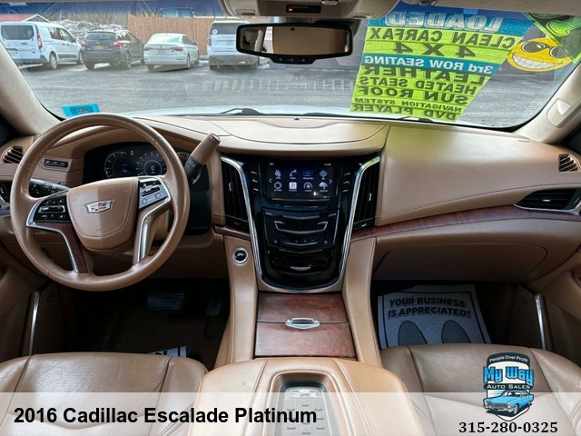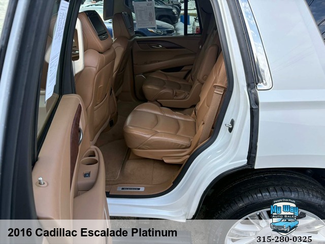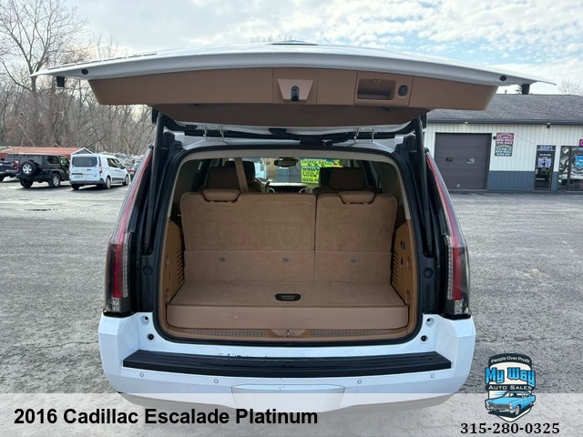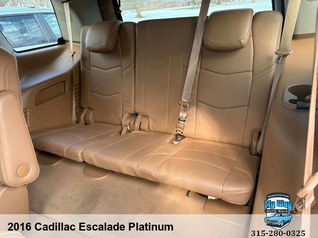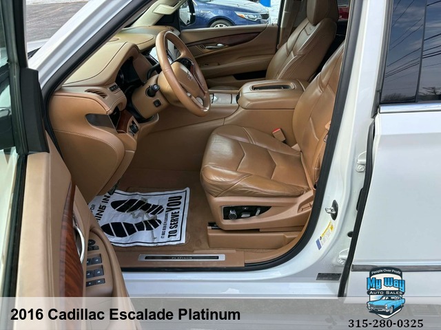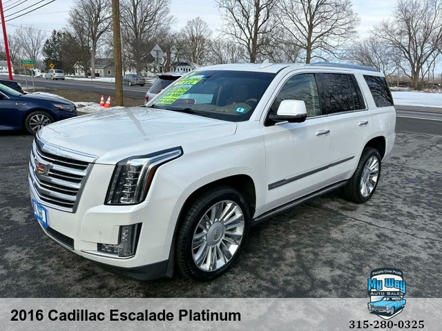 Introducing the ultimate luxury SUV - the 2016 Cadillac Escalade Platinum. This sleek and stylish vehicle is loaded with all the premium features you could ever want, from heated seats to a navigation system to a sun/moon roof. With a powerful 6. 2L V8 engine under the hood, this Escalade is ready to take on any adventure. Whether you're cruising around town or hitting the open road, this Cadillac has everything you need for a comfortable and enjoyable ride. Plus, with over 165,000 miles on it, you can trust that this vehicle is reliable and built to last. Don't miss out on your chance to own this top-of-the-line SUV. Upgrade your driving experience today with the 2016 Cadillac Escalade Platinum. Rain Sensing Wipers, Interval Wipers, Electrochromic Interior Rearview Mirror, Daytime Running Lights, Cargo Area Tiedowns, Passenger Multi-Adjustable Power Seat, Front Power Lumbar Support, Telematics System, Subwoofer, Voice Activated Telephone, DVD Player, AM/FM Radio, Trip Computer, Tire Pressure Monitor, Adjustable Foot Pedals, Telescopic Steering Column, Steering Wheel Mounted Controls, Leather Steering Wheel, Tachometer, Separate Driver/Front Passenger Climate Controls, Vehicle Stability Control System, Traction Control, Child Safety Door LocksRWD, Back up camera, No accidents, Power everything, Satellite radio, New tires, Very clean interior, Financing options available, First time buyer's program available , Call George 3, One, 5-4, One, 5, Five, 0, Six, 1, Call Justin 3, One, 5-7, Nine, 5-7, Four, 4, Nine, Call Mechelle 3, One, 5-7, Six, 1 - Seven, 2 , Six, 9, Call Scott 3, One, 5-3, Four, 5, Five, 5, One, 9, View our inventory at www.mywayautocny.com