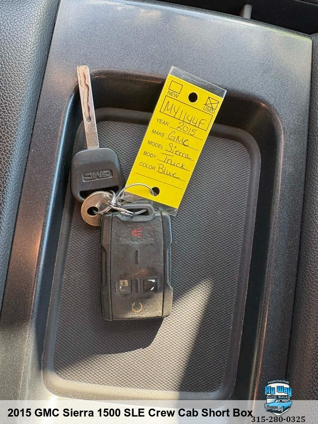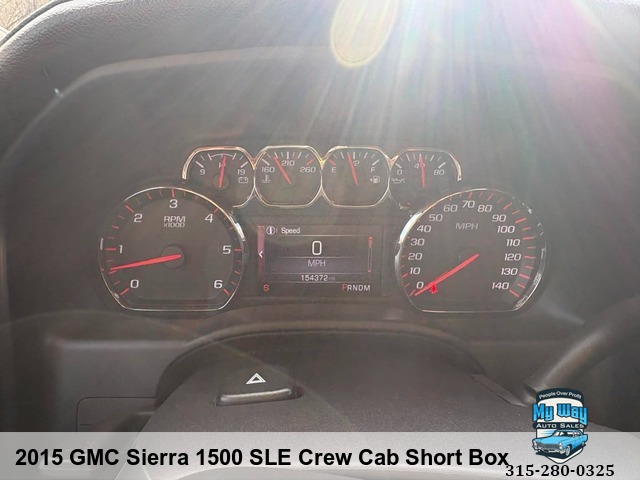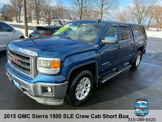 Are you in the market for a reliable and versatile truck? Look no further than our 2015 GMC Sierra 1500 SLE Crew Cab Short Box! With its powerful 5. 3L V8 engine, this truck is ready to tackle any job you throw its way. Whether you're hauling equipment on the job site or taking a weekend trip with your family, this Sierra has got you covered. Equipped with features like heated seats and satellite radio, this truck offers both comfort and convenience. And with a mileage of 154,368 miles, you can trust that it still has plenty of life left in it. Don't miss out on this opportunity to own a top-of-the-line truck at an unbeatable price. Contact us today to schedule a test drive and see for yourself why the GMC Sierra 1500 is the perfect choice for all your transportation needs. Child Safety Door Locks, 4WD/AWD, Electronic Brake Assistance, Traction Control, Vehicle Stability Control System, Second Row Side Airbag, Tachometer, Leather Steering Wheel, Steering Wheel Mounted Controls, Tire Pressure Monitor, Trip Computer, Telematics System, Front Split Bench Seat, Second Row Folding Seat, Cargo Area Tiedowns, Automatic Headlights, Daytime Running Lights, Pickup Truck Cargo Box Light, Full Size Spare Tire, Run Flat Tires, Interval Wipers,4WD, Non-smoker, No accidents, Looks & runs great, Very clean interior, Financing options available, First time buyer's program available , Back up camera, Well maintained, Call George 3, One, 5-4, One, 5, Five, 0, Six, 1, Call Justin 3, One, 5-7, Nine, 5-7, Four, 4, Nine, Call Mechelle 3, One, 5-7, Six, 1 - Seven, 2 , Six, 9, Call Scott 3, One, 5-3, Four, 5, Five, 5, One, 9, View our inventory at www.mywayautocny.com