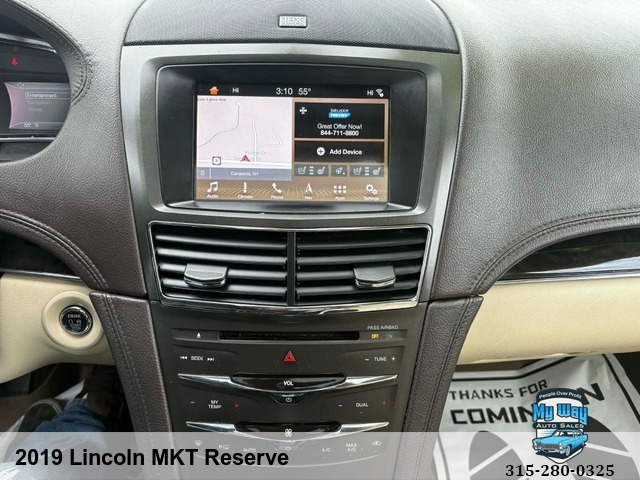 Experience luxury and power with our 2019 Lincoln MKT Reserve SUV! This sleek and stylish vehicle comes fully loaded with all the features you could ever dream of, from heated leather seats to a panoramic sunroof. With a powerful 3. 5L V6 turbo engine, you'll have no problem cruising down the highway in style. Safety is our top priority, which is why this beauty comes equipped with multiple airbags, anti-lock brakes, and keyless entry for added peace of mind. Whether you're running errands around town or heading out on a road trip adventure, this Lincoln MKT has everything you need for a comfortable and enjoyable ride. Don't miss out on your chance to own this incredible vehicle - schedule your test drive today and experience the luxury for yourself! AWD, Back up camera, No accidents, Out of State, GPS system, Satellite radio, Power everything, Financing options available, First time buyer's program available , Call George 3, One, 5-4, One, 5, Five, 0, Six, 1, Call Justin 3, One, 5-7, Nine, 5-7, Four, 4, Nine, Call Mechelle 3, One, 5-7, Six, 1 - Seven, 2 , Six, 9, Call Scott 3, One, 5-3, Four, 5, Five, 5, One, 9, View our inventory at www.mywayautocny.com